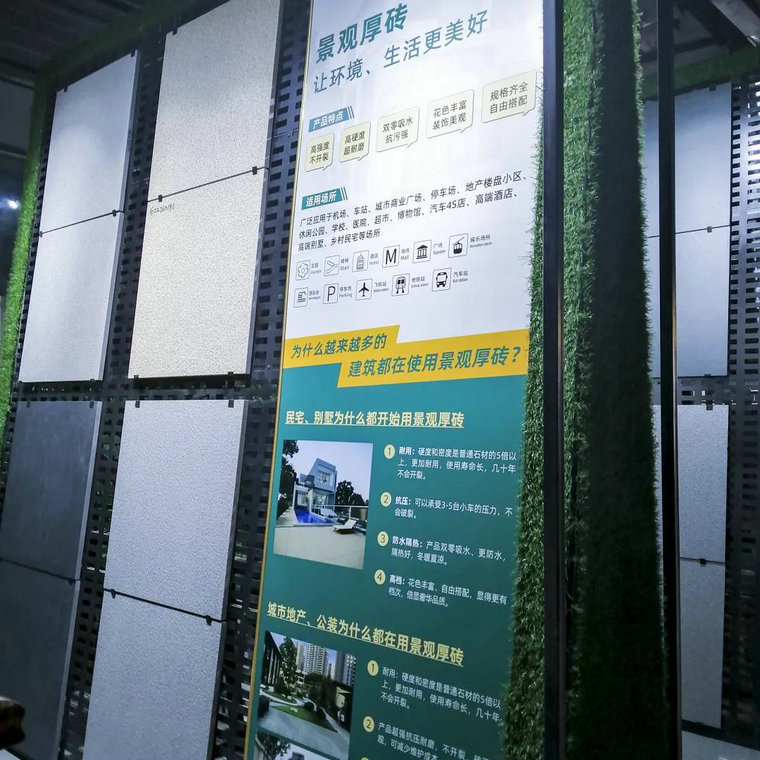 第二、就是在門(mén)店要做好景觀(guān)厚磚產(chǎn)品樣品展示,把各種工程需要的厚磚產(chǎn)品規格、花色展示齊全,我向公司申請了厚磚專(zhuān)區建設,公司市場(chǎng)部專(zhuān)業(yè)人員幫我提供了設計、安裝指導,順利完成產(chǎn)品展示,有利于我區域的工程老板、設計師來(lái)參觀(guān)體驗產(chǎn)品。